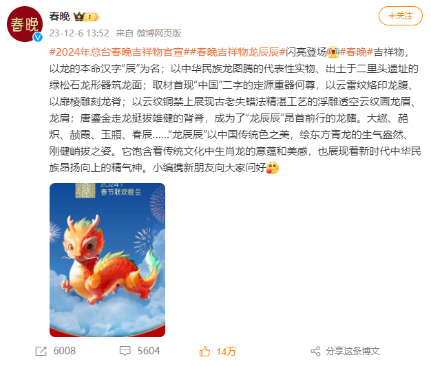 春晚龍年吉祥物“龍辰辰”翻車了?