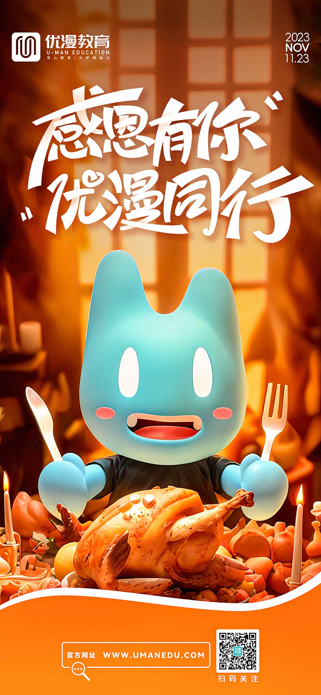 AIGC生成優(yōu)漫教育U仔建模效果圖制作感恩節(jié)海報(bào)