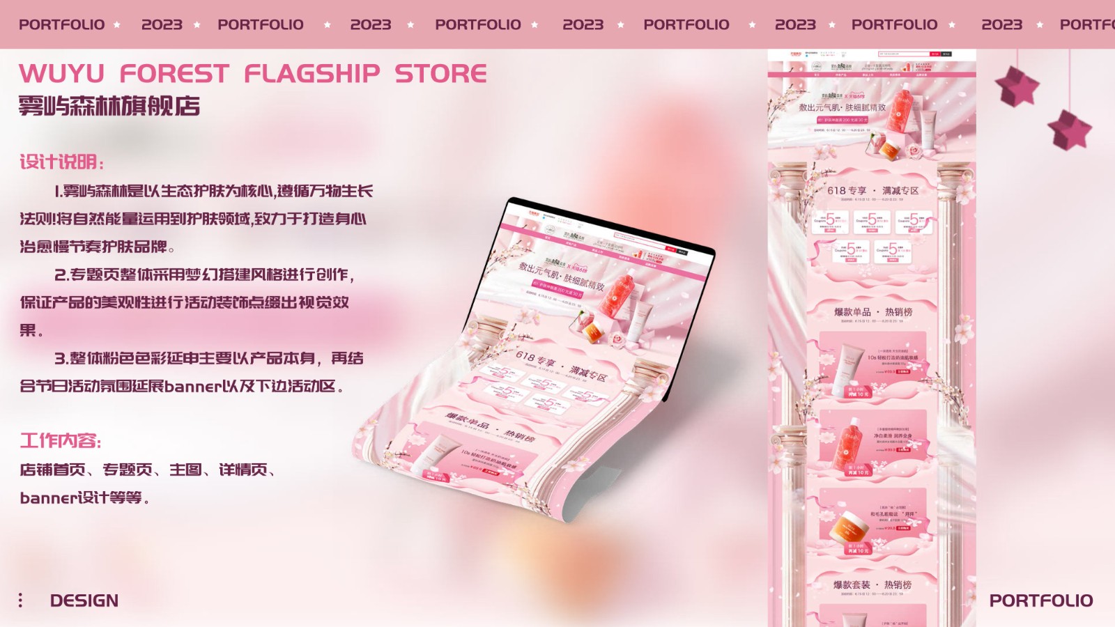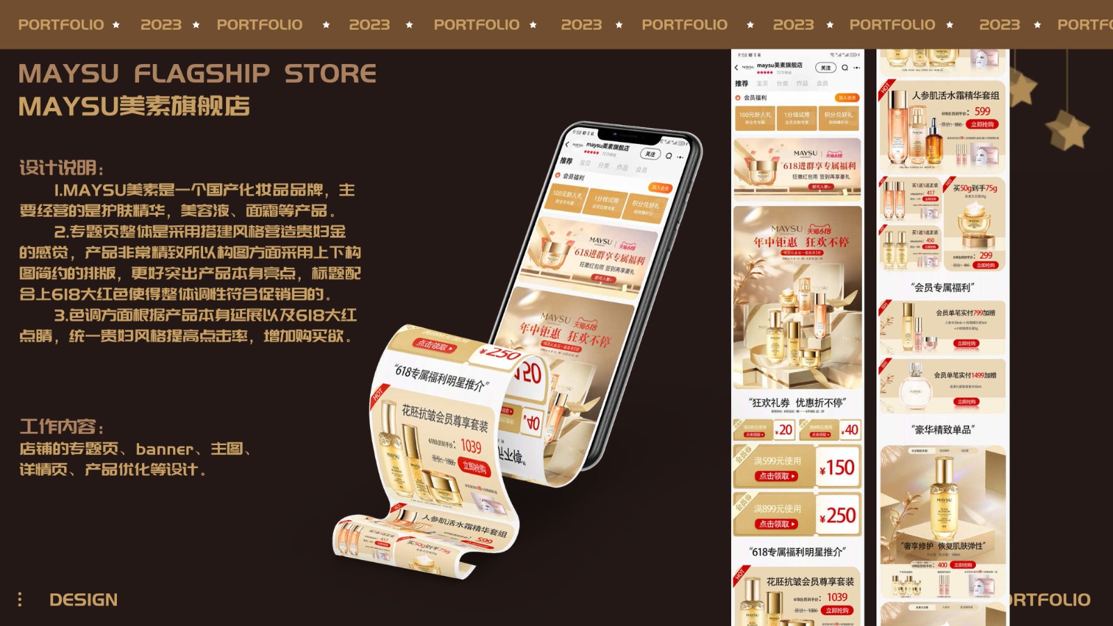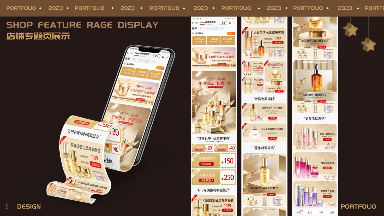 作品集中展示品牌標識設計、電商廣告頁面及UI設計,強調創意設計與技術實現的結合,展示出色的設計執行能力和對市場的敏銳洞察力。
