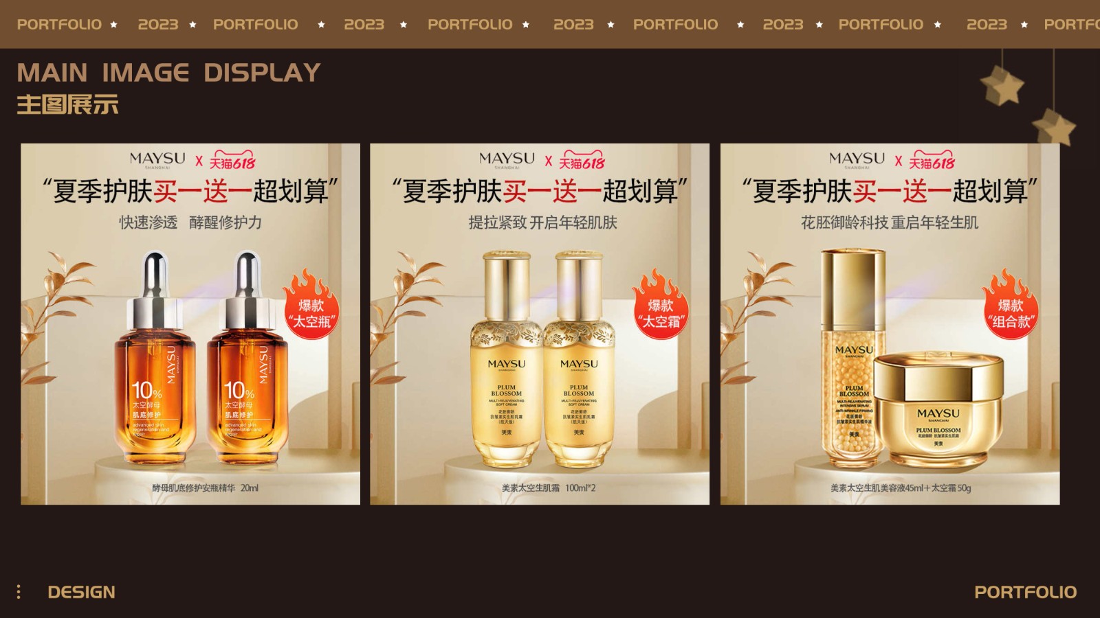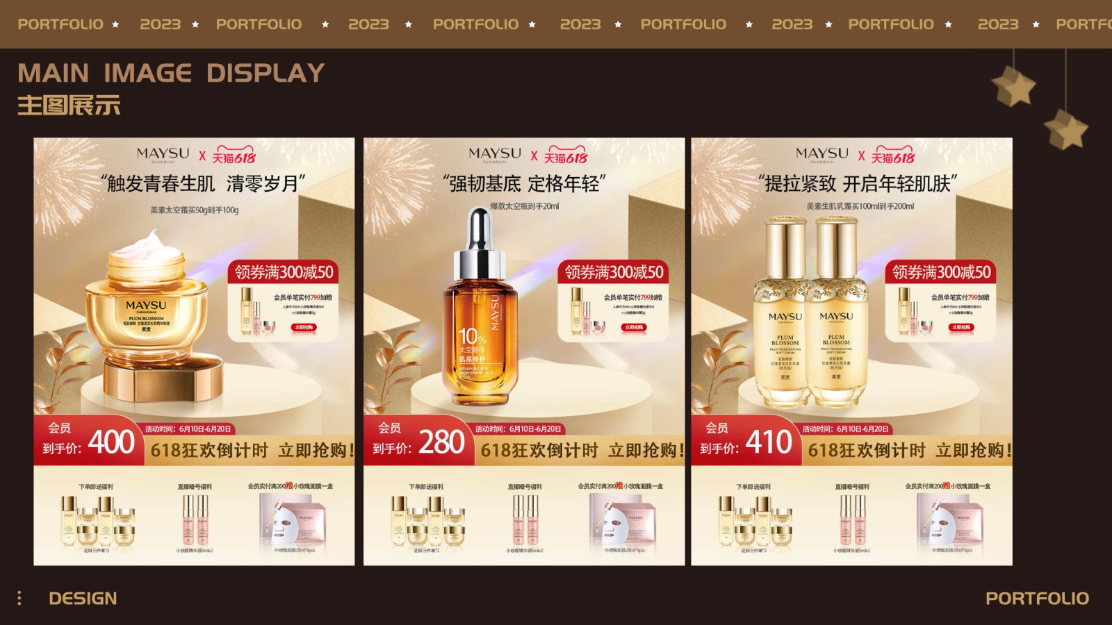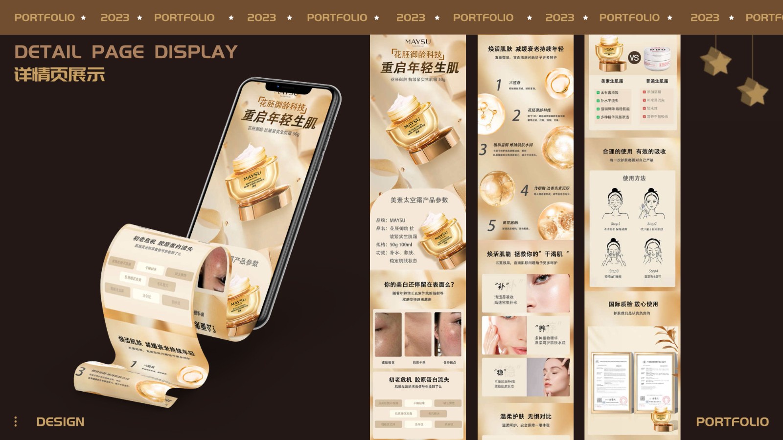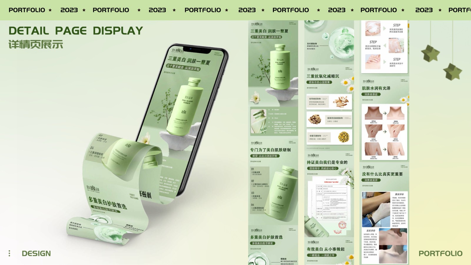 作品集中展示品牌標識設計、電商廣告頁面及UI設計,強調創意設計與技術實現的結合,展示出色的設計執行能力和對市場的敏銳洞察力。