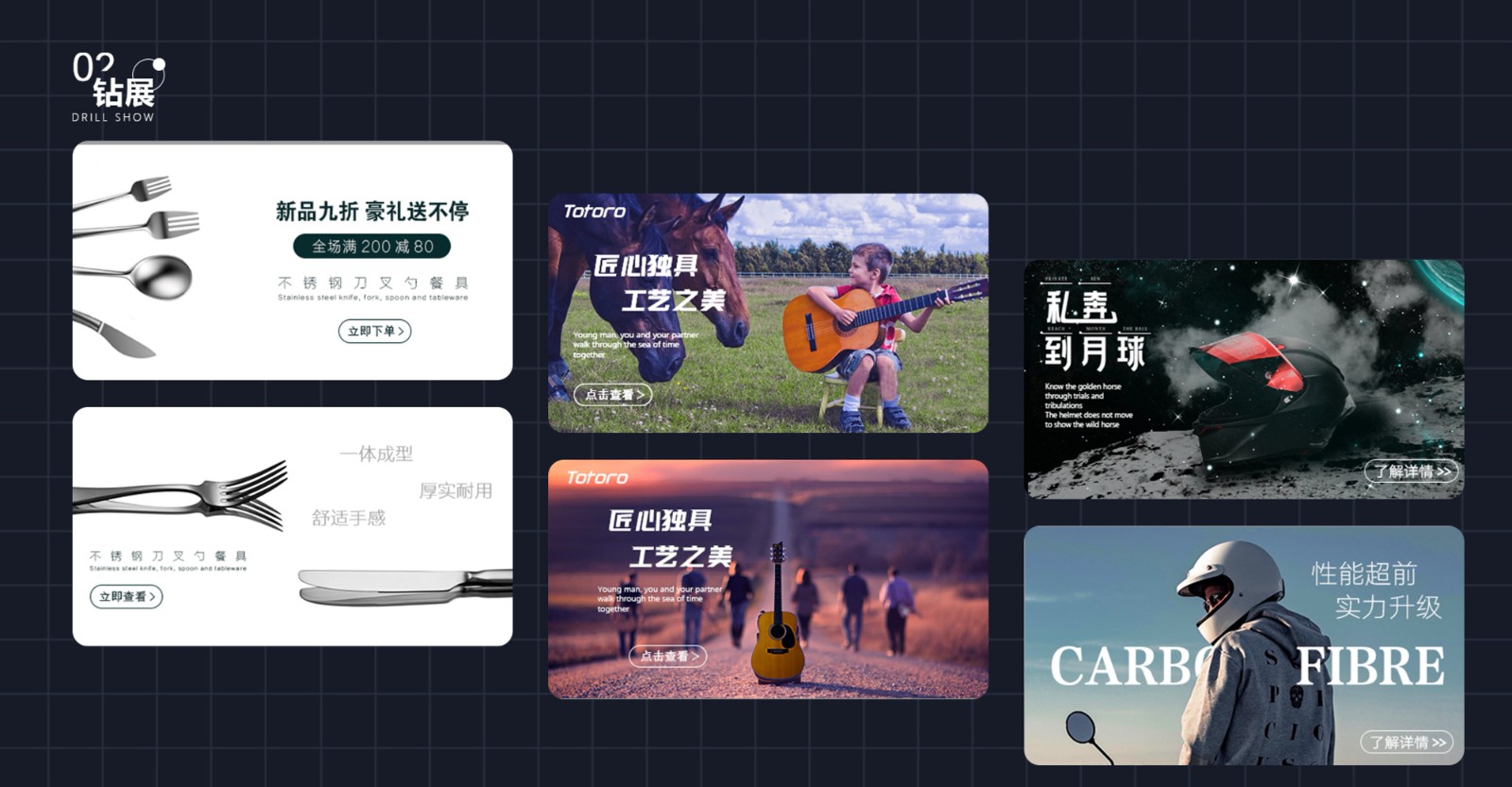 包括品牌視覺系統設計、電商活動頁面及用戶界面設計,突出設計思維與技術實現的深度融合,展示全面的設計實力和創新能力。