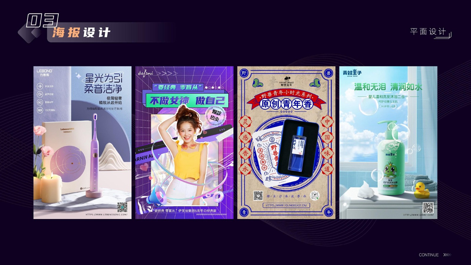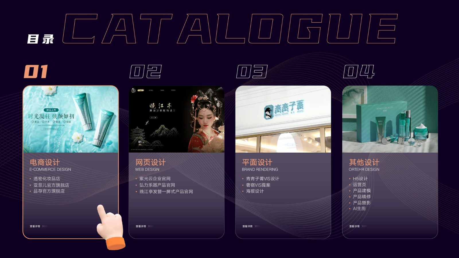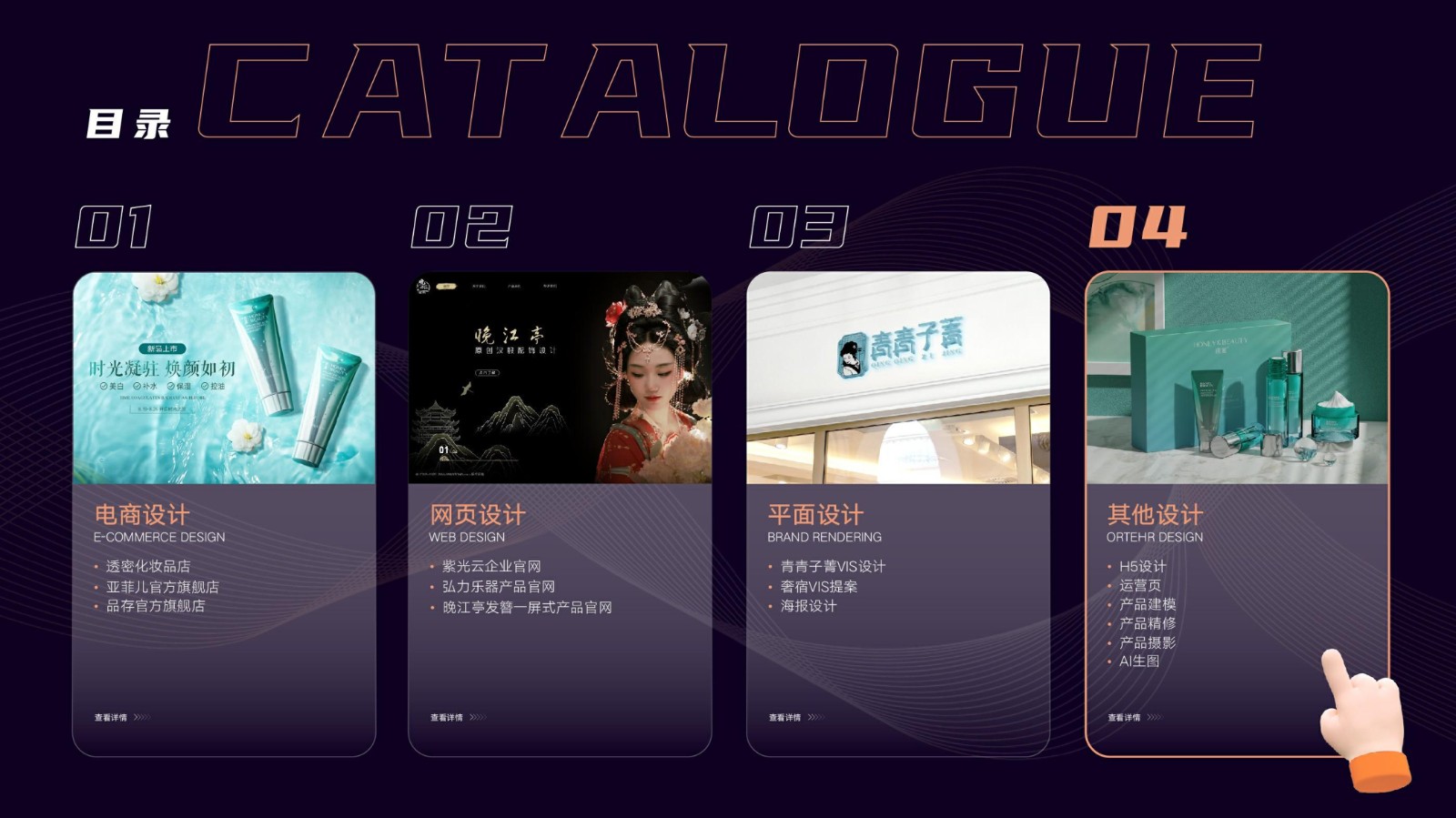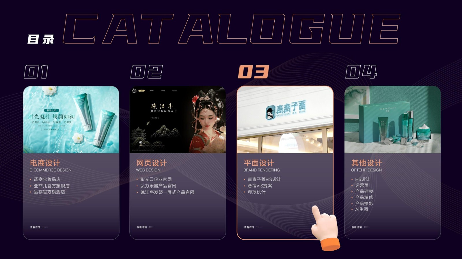 涉及基礎平面設計、品牌VI系統設計、電商店鋪設計及移動端UI設計,強調視覺傳達和交互設計的專業性和技術深度,展示跨領域設計的綜合實力。