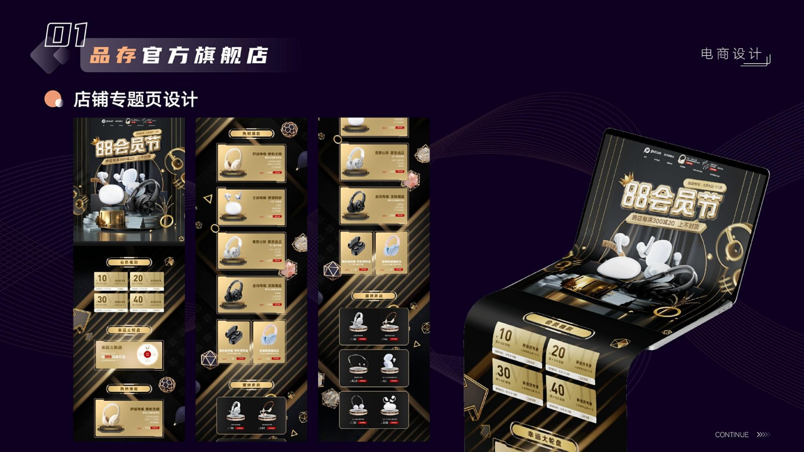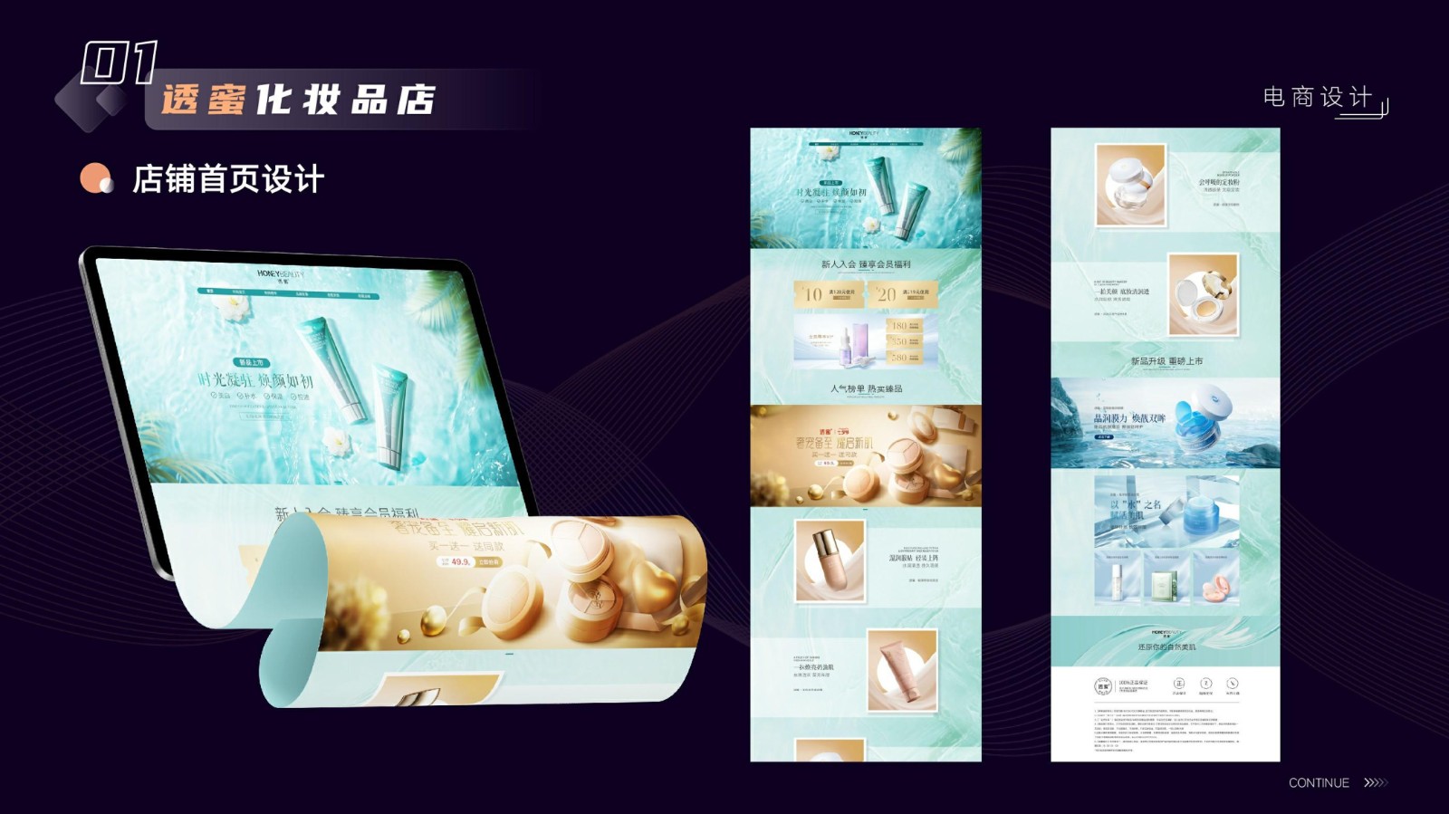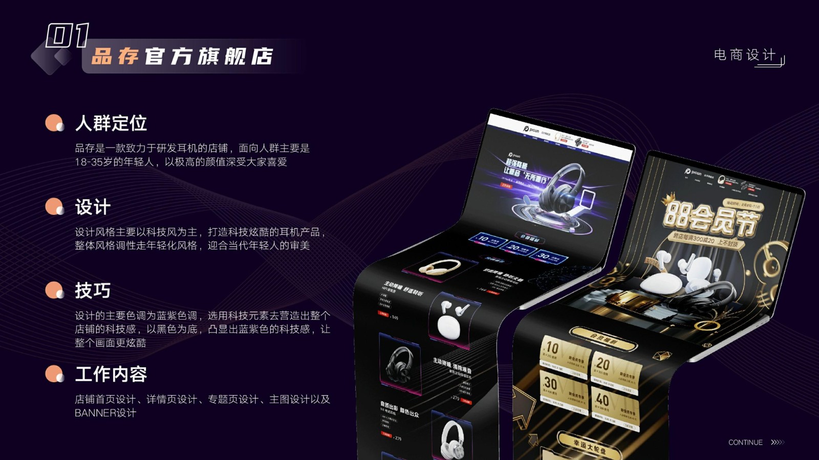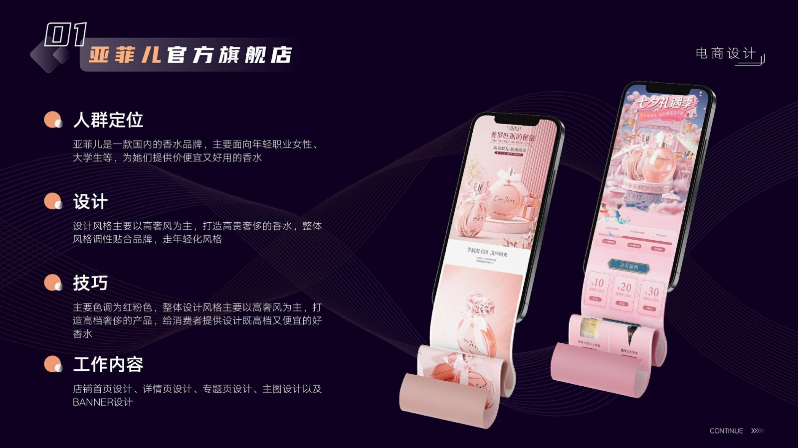 涉及基礎平面設計、品牌VI系統設計、電商店鋪設計及移動端UI設計,強調視覺傳達和交互設計的專業性和技術深度,展示跨領域設計的綜合實力。
