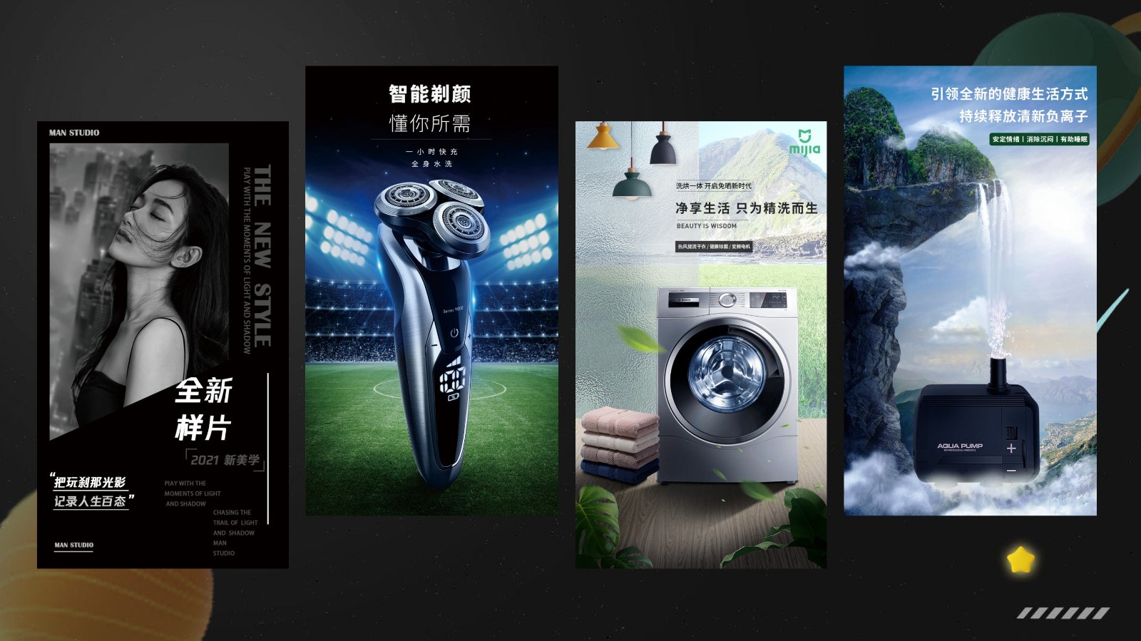 作品集涵蓋基礎設計、品牌標識、電商頁面及UI設計,展示從概念草圖到最終產品的完整流程,突顯扎實的設計基礎和創新能力,適應多種設計需求。