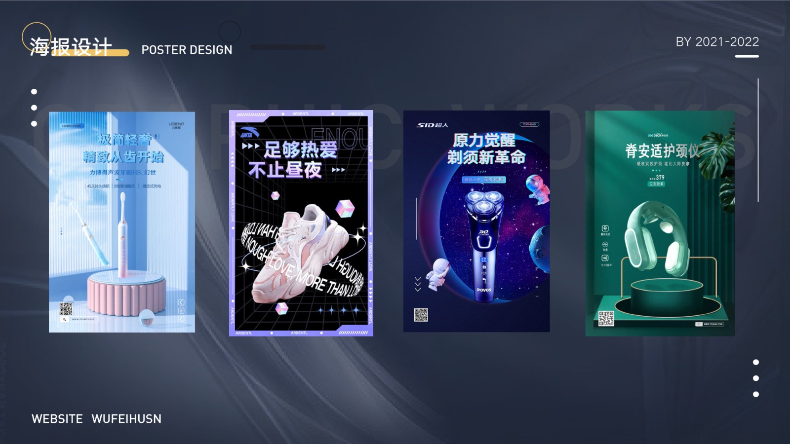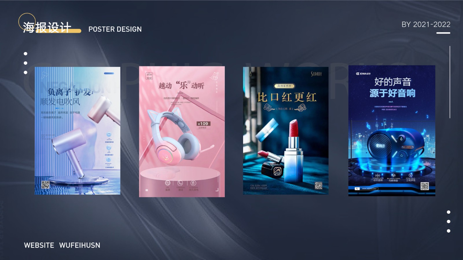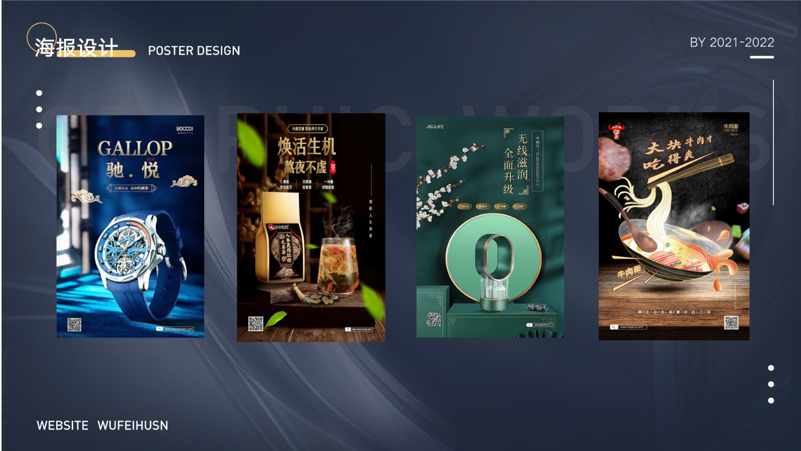 作品集展示廣告物料全案,包括海報設計、傳單設計、品牌廣告,附帶日常練手作品、3D建模和視覺傳達設計。