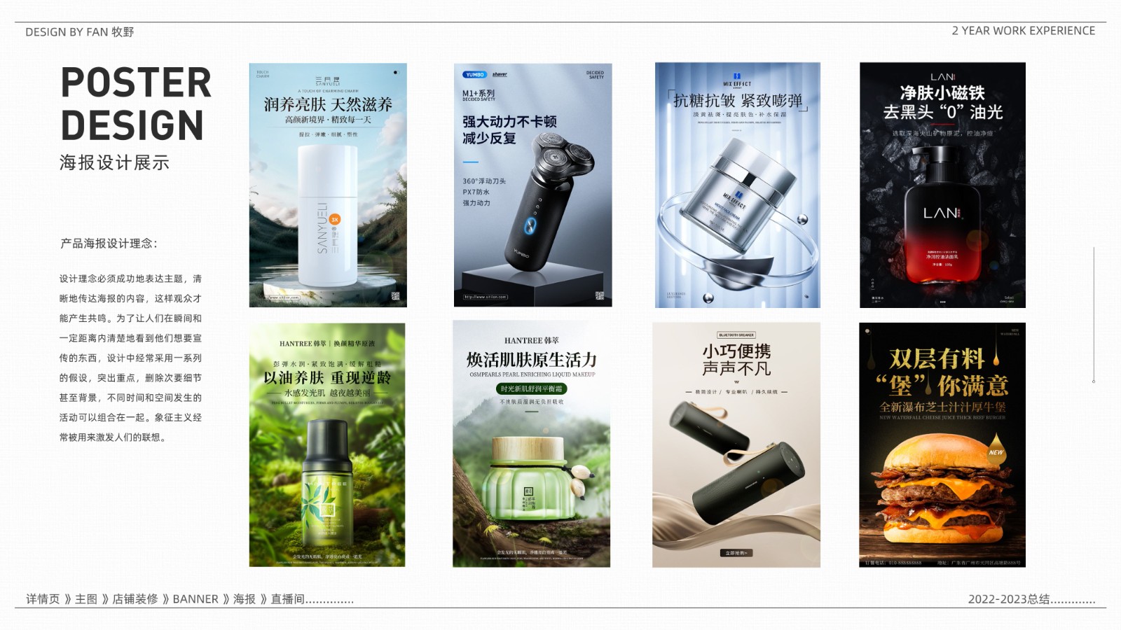 作品集中展示了在品牌設計、廣告創意、包裝設計等方面的專業技能。擅長將客戶的需求轉化為獨特且富有視覺沖擊力的設計,感受到設計理念和創造力。