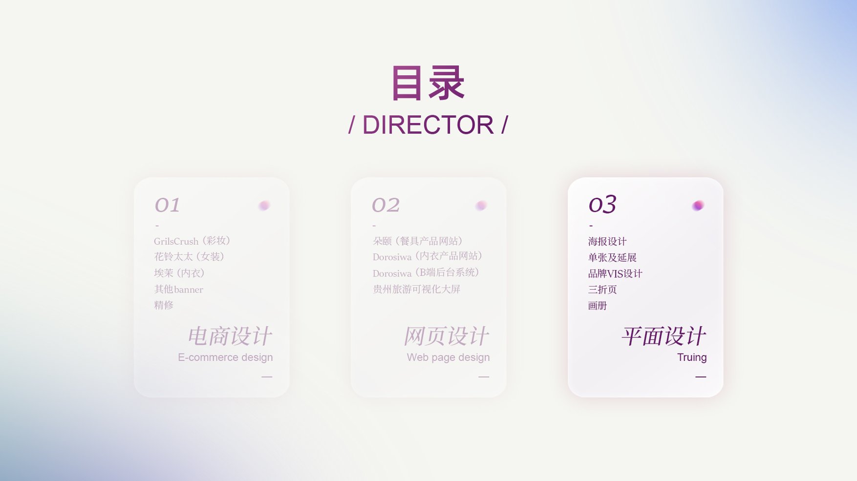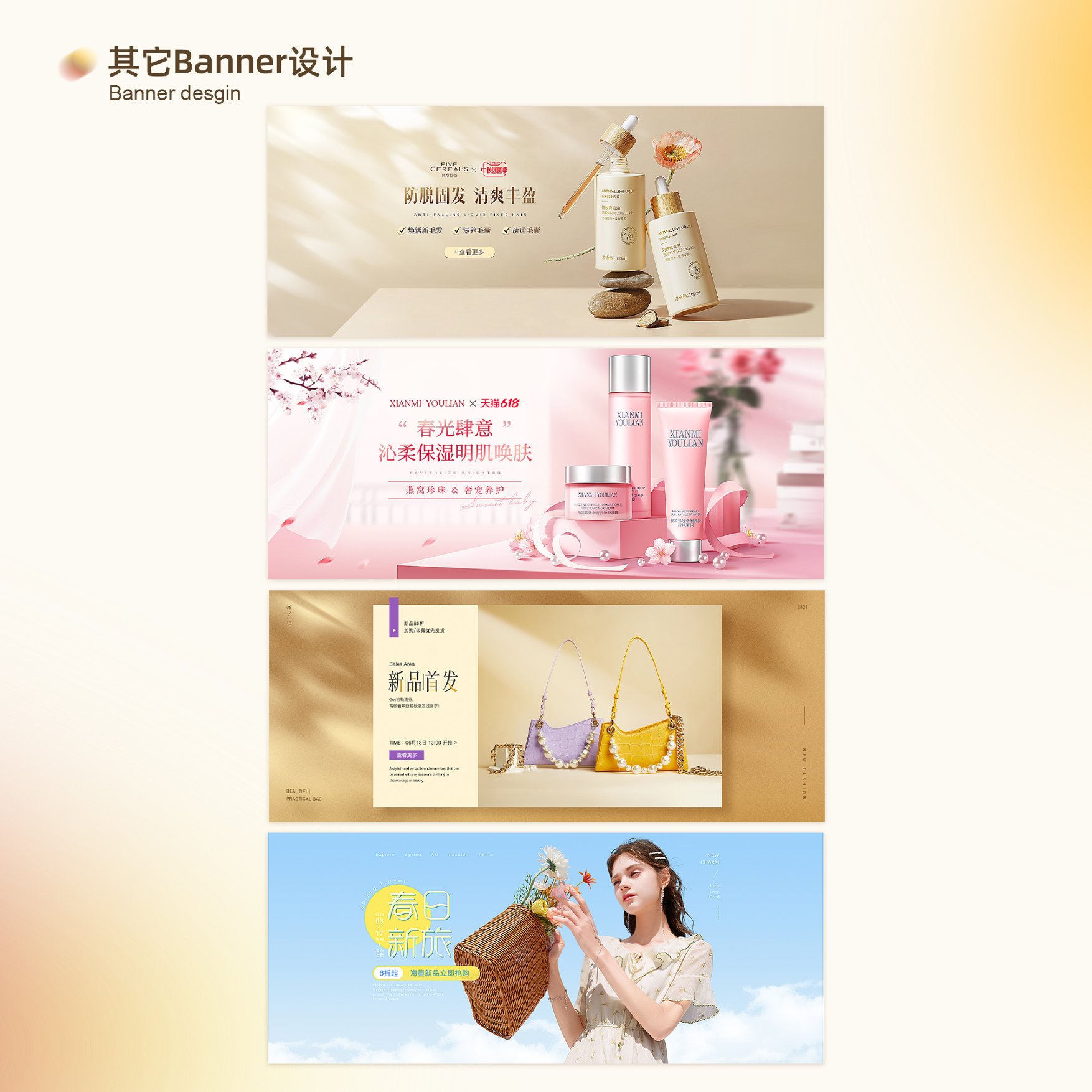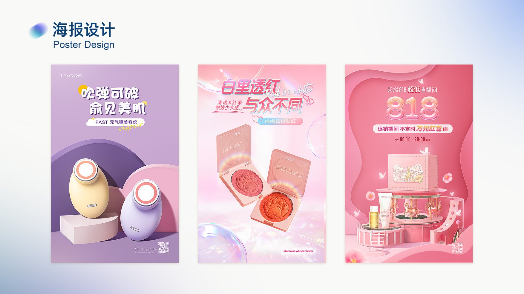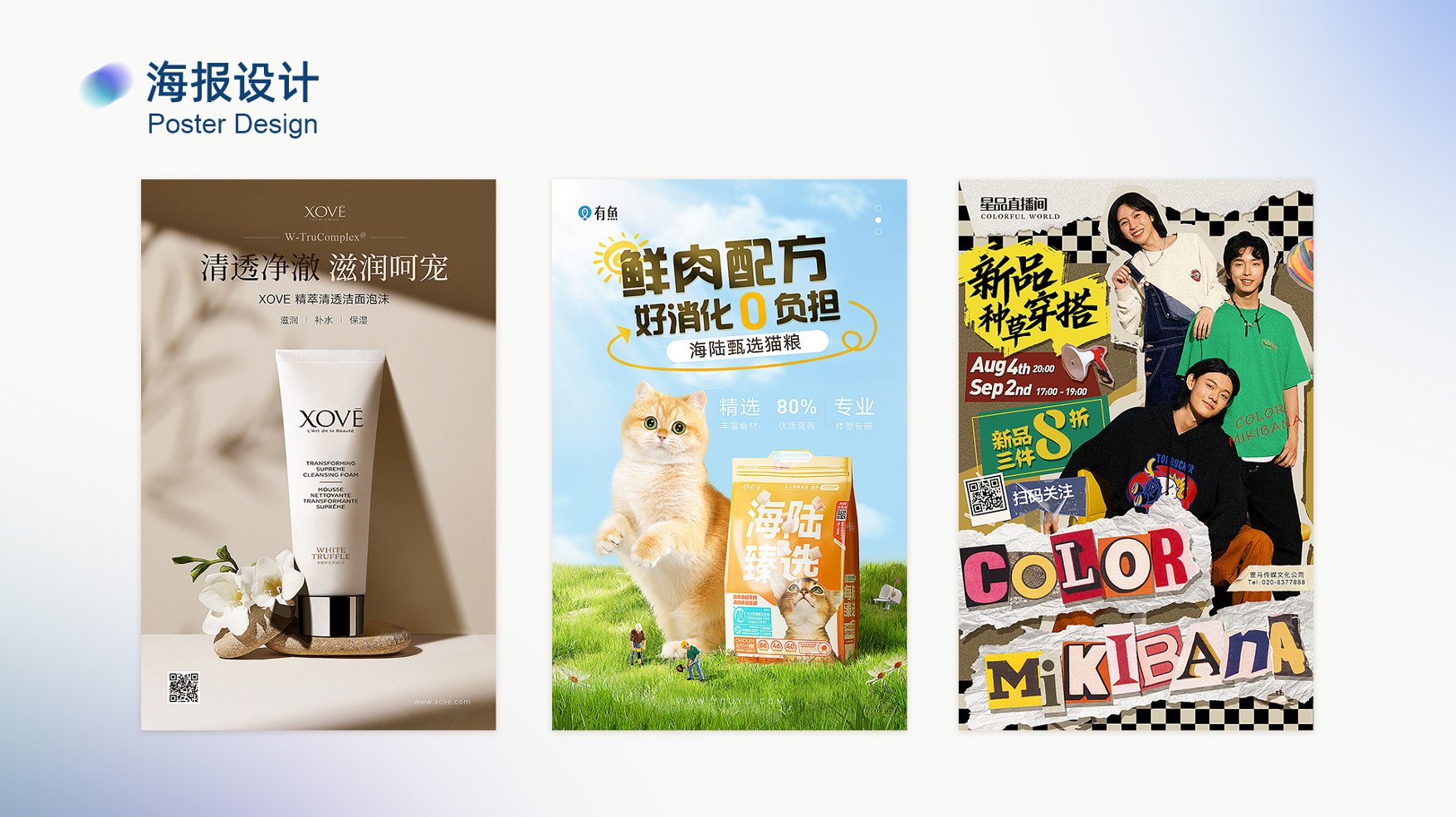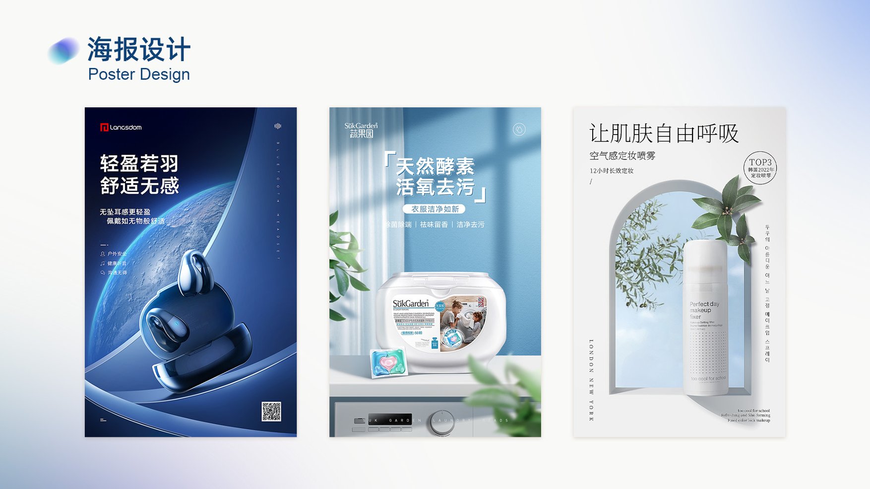 展示從品牌創建到電商廣告頁面及UI設計的全流程案例,突出跨領域設計技能和項目管理能力,體現設計多樣性和應對不同設計需求的能力。